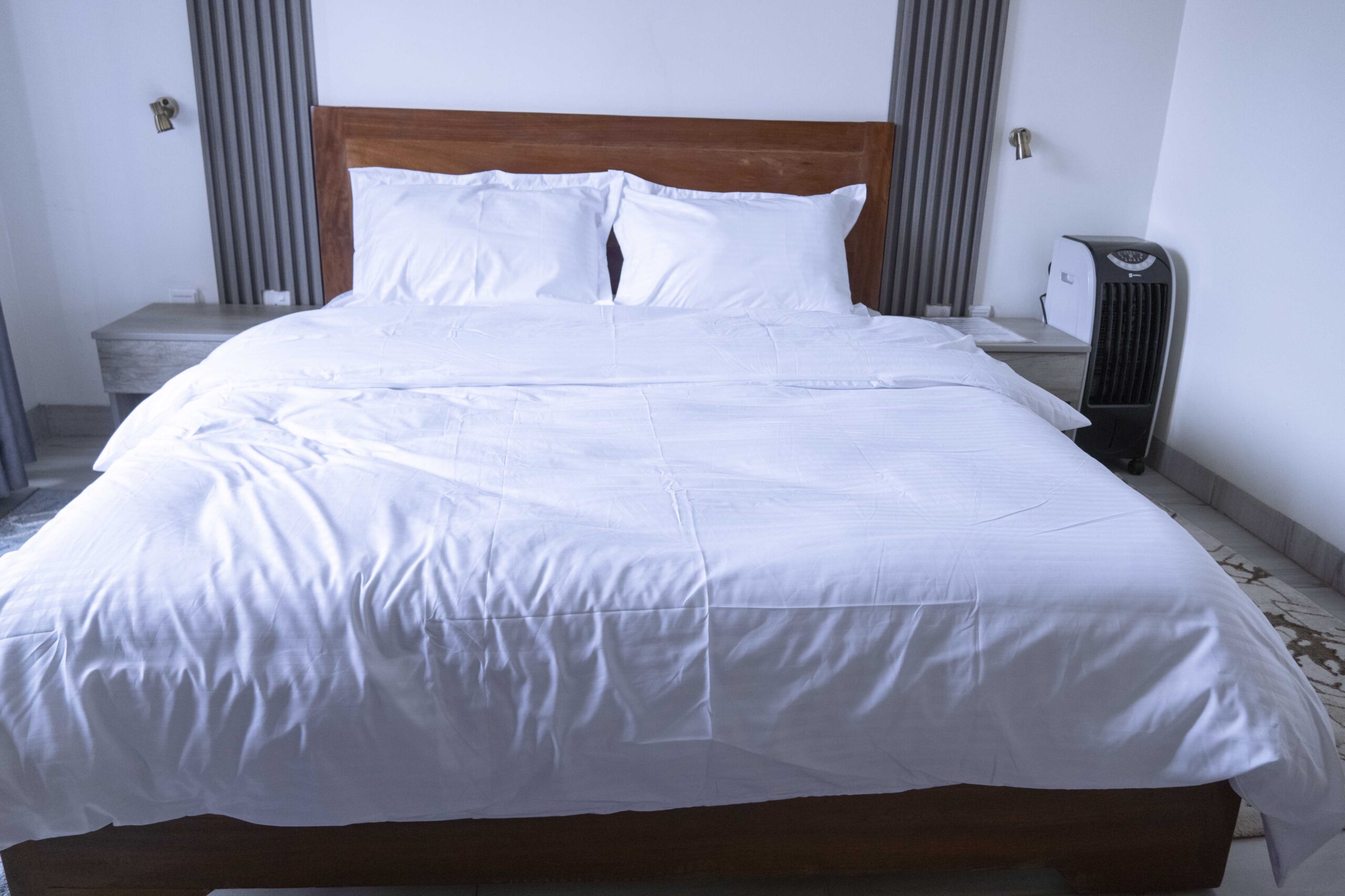 Spacious and bright, with a plush double bed, closet, and calming decor.